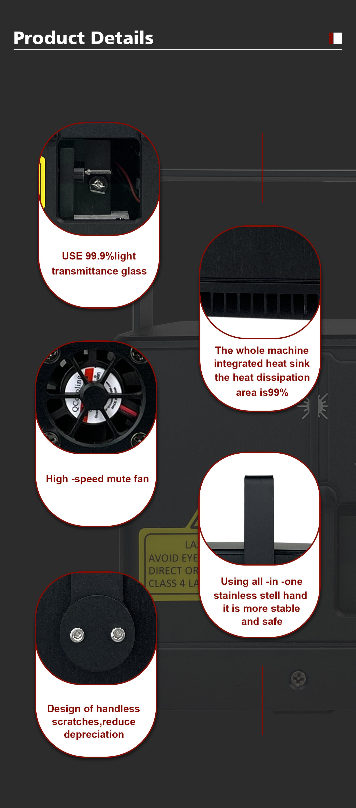 | Cooling method | integrated aluminum radiator, the whole machine is cold and cooling down |
